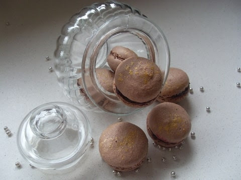 | Chocolade macarons met pure ganache en kersenconfituur En hier een foto van mijn laatste lading Macarons, toch wel een verschil hé ;) |